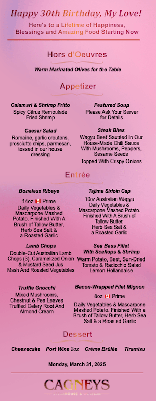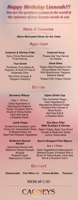 • not offered on special days, such as Valentine’s, Mother’s Day, Christmas Eve/Day or New Year’s Eve.